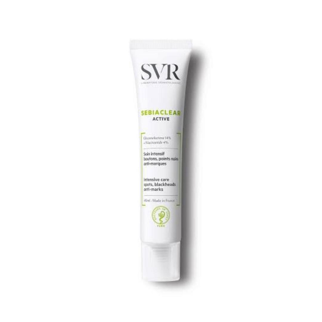 SVR Sebiaclear Active es un tratamiento intensivo anti-marcas para pieles grasas con tendencia acneica. ¡Ayuda a eliminar las imperfecciones en 7 días con SVR Sebiaclear Active! Aplicar sobre todo el rostro después de la limpieza por la mañana y por la noche. Utilizar por sí solo o con los tratamientos dermatológicos